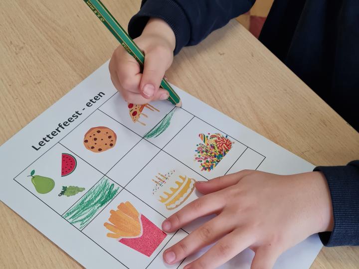 - De kinderen kleuren op een 'stemformulier' met de verschillende ideeën, één of meerdere ideeën die ze goed of leuk vinden groen. Eventueel kleuren ze één of meerdere ideeën die ze helemaal geen goed idee vinden rood. Oranje kan bijkomend gebruikt worden voor ideeën waarover ze twijfelen.